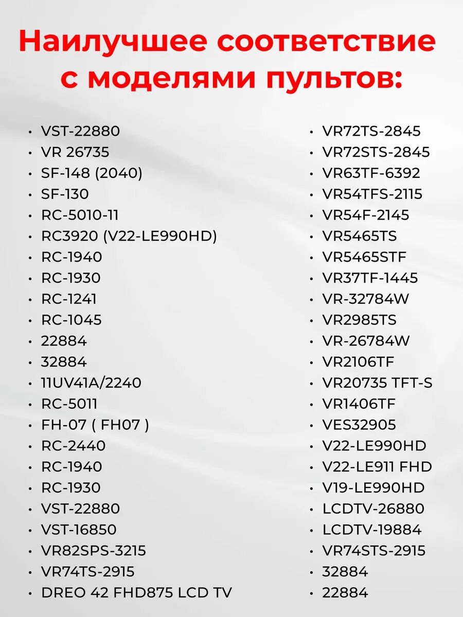 HRM1492 Универсальный пульт RM-L1389 для телевизоров VЕSTEL информация: