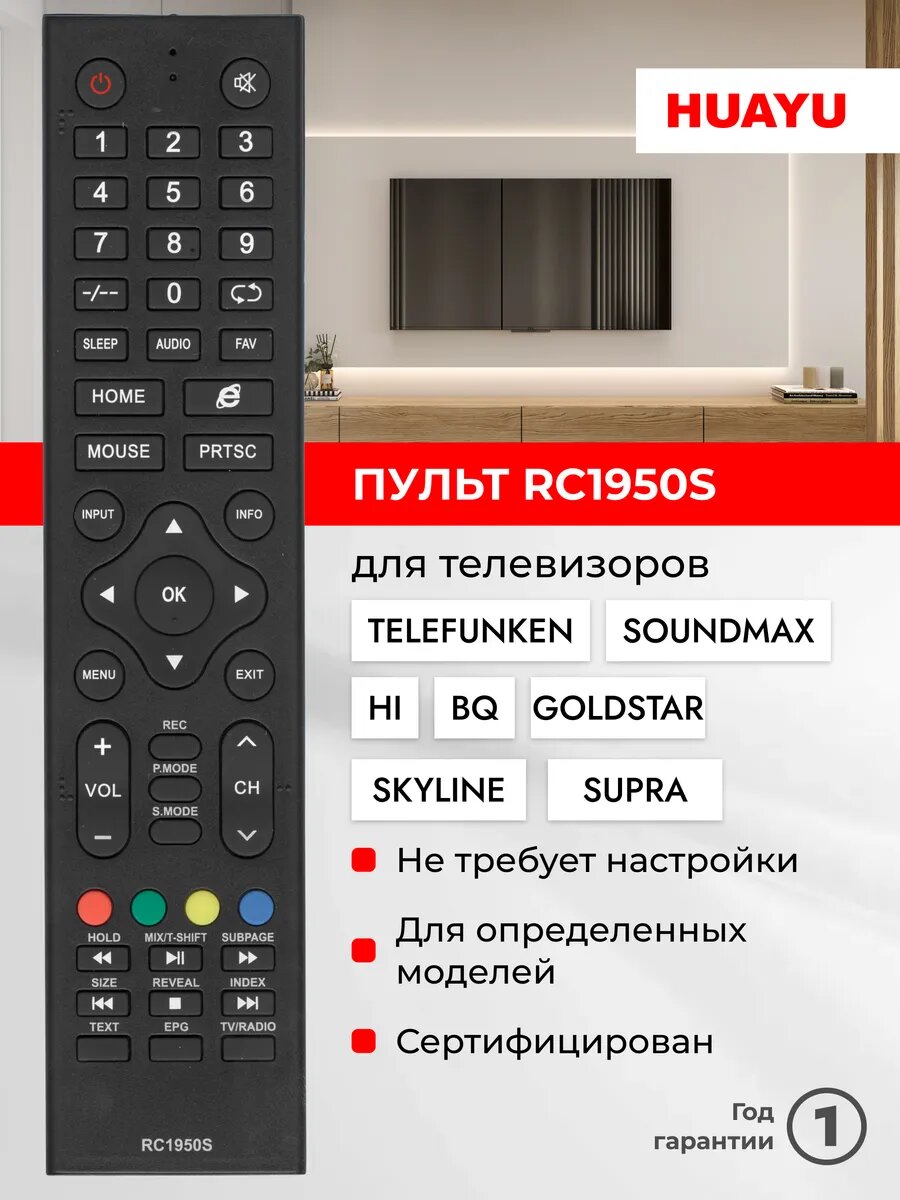 10 цен на HOB3492 Пульт RC1950S для телевизоров разных брендов
