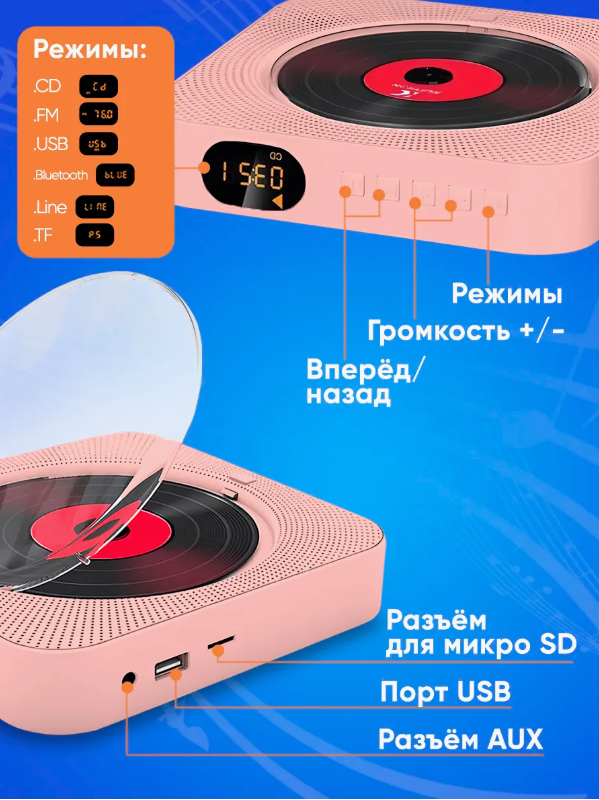 Отзывы на CD проигрыватель для дисков / cd плеер с USB, радио, пульт ДУ, дисплеем (розовый)