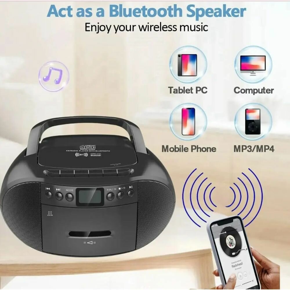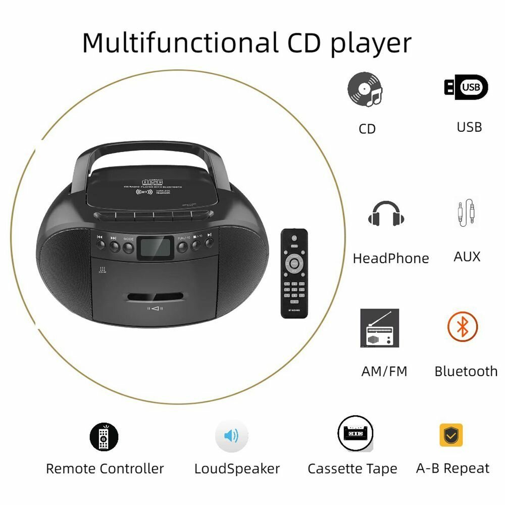 Лучший Bluetooth CD-плеер для беспроводного воспроизведения музыки CD-плееры Портативные CD-плееры Обзоры черного цвета