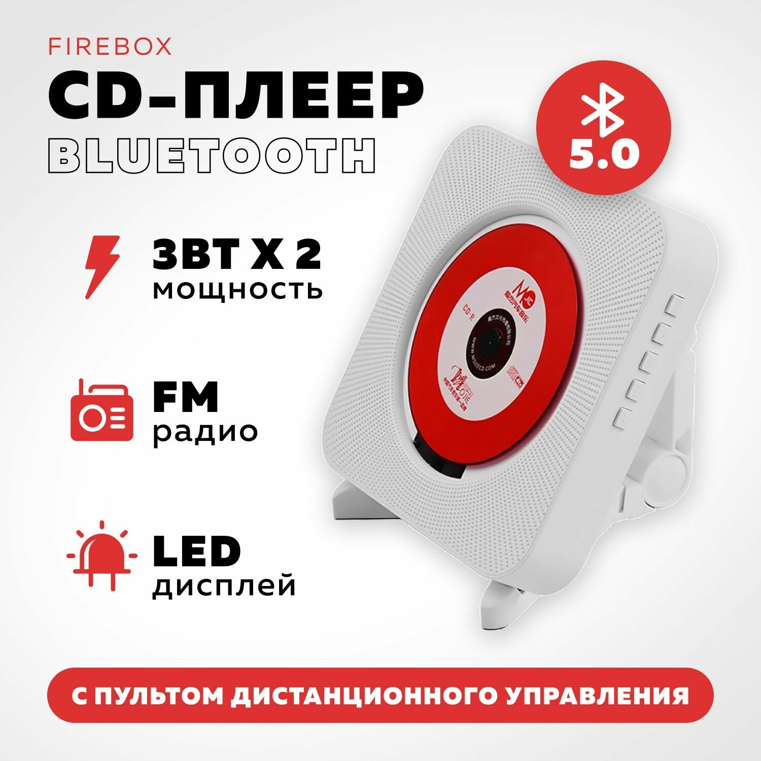 Портативный Bluetooth CD плеер c LED дисплеем и пультом управления FIREBOX информация: