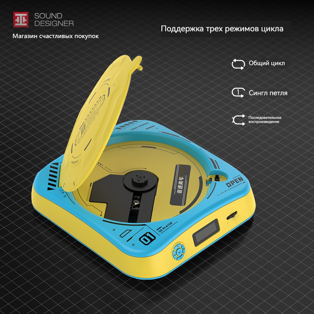 Отзывы на CD-плеер SOUND DESIGNER, портативный, 1800 мАч, подключение по Bluetooth, желтый