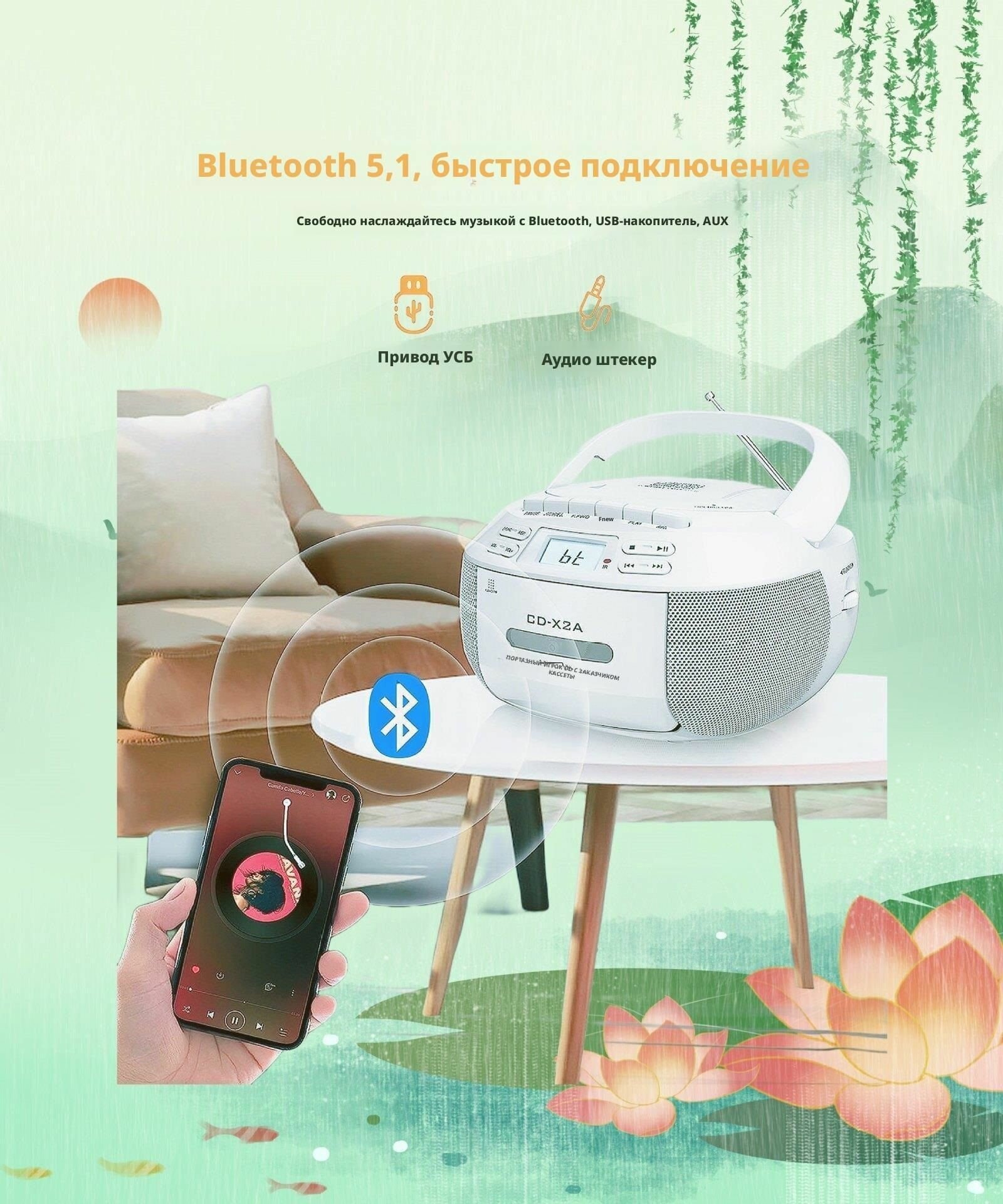 Портативный CD-плеер Boombox, Bluetooth, питание от батареек/сети 220