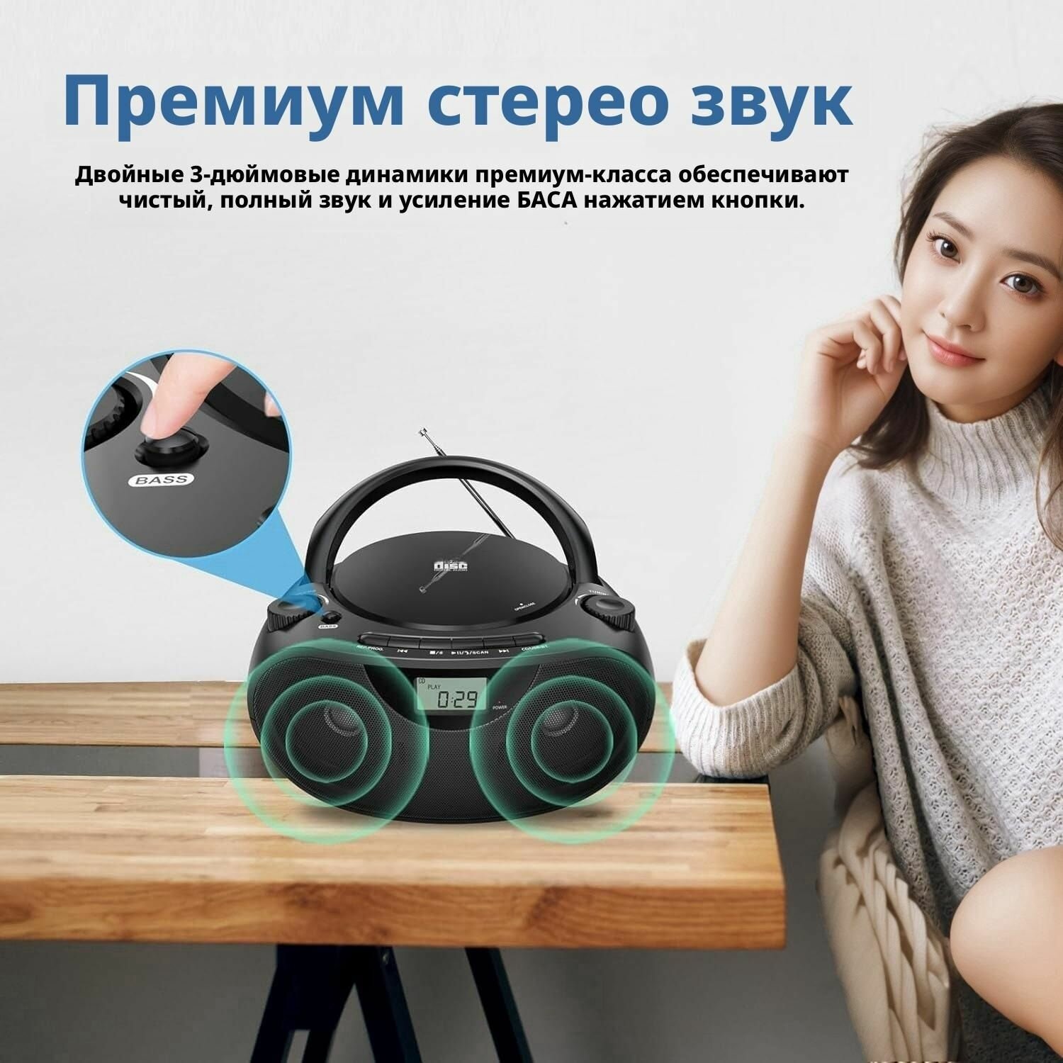 10 цен на Портативный CD-плеер "Boombox", с Bluetooth, с дисплеем, верхняя загрузка, пластик