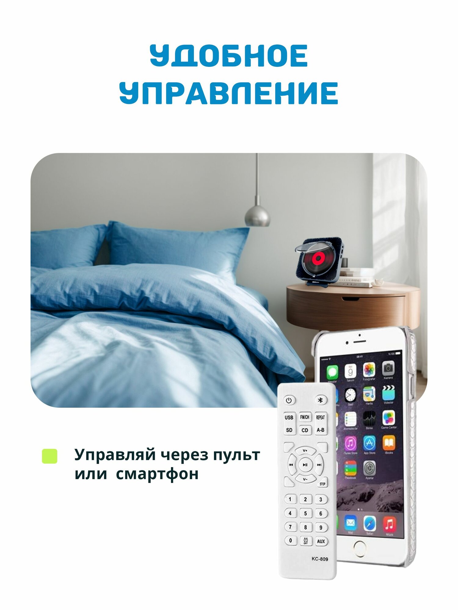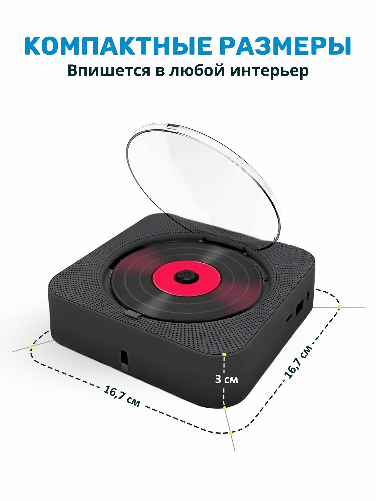 Музыкальный проигрыватель портативный CD плеер с пультом управления и функцией Bluetooth через JBL, Радио, CD, USB, MP3, AUX информация: