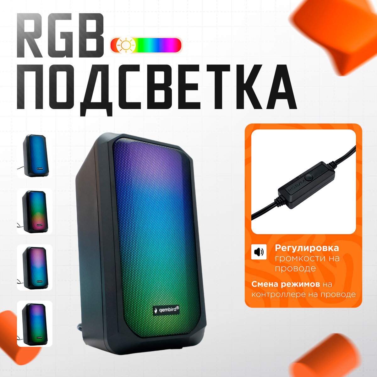 Акустическая система 2.0 Gembird черная 10Вт с RGB подсветкой SPK-300 информация: