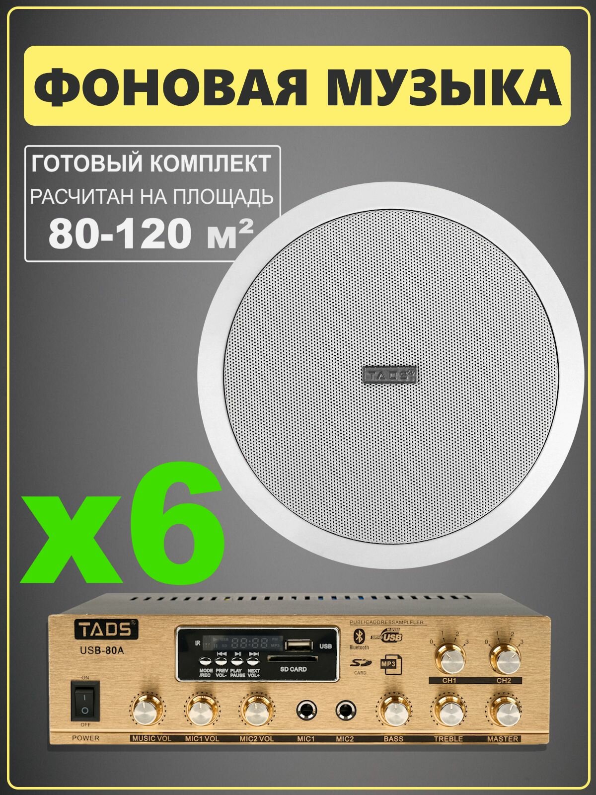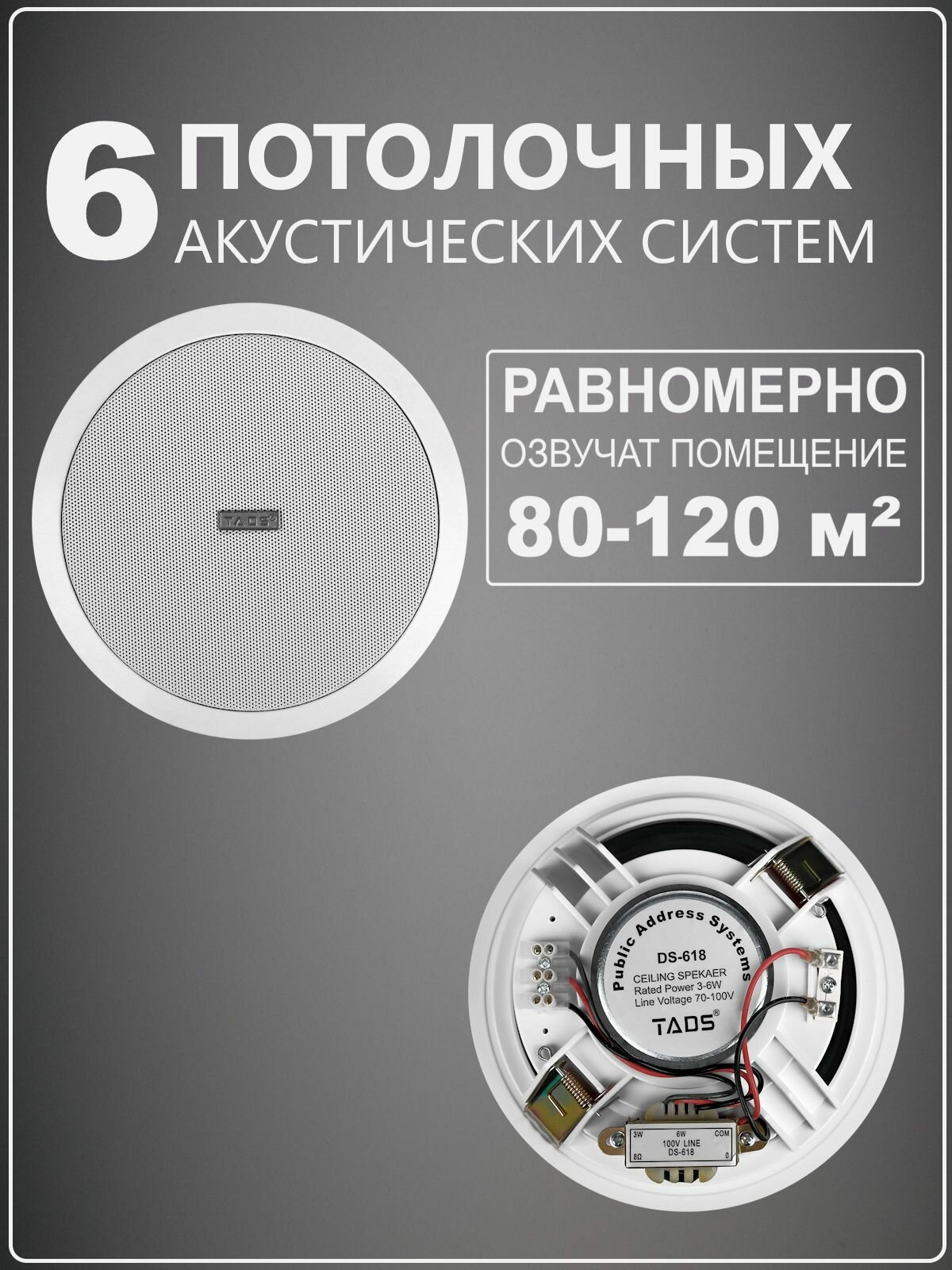 Потолочная акустическая система 6 шт в комплекте с усилителем MusicTone MT07-6 информация: