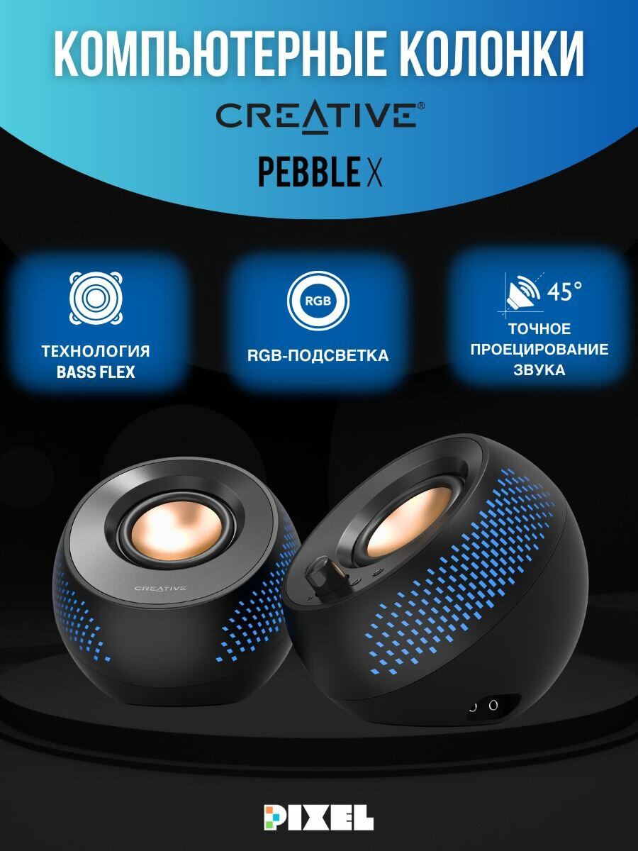 Отзывы на Компьютерные колонки 2.0 Creative PEBBLE X, 30 Ватт, RGB, Bluetooth 5.3