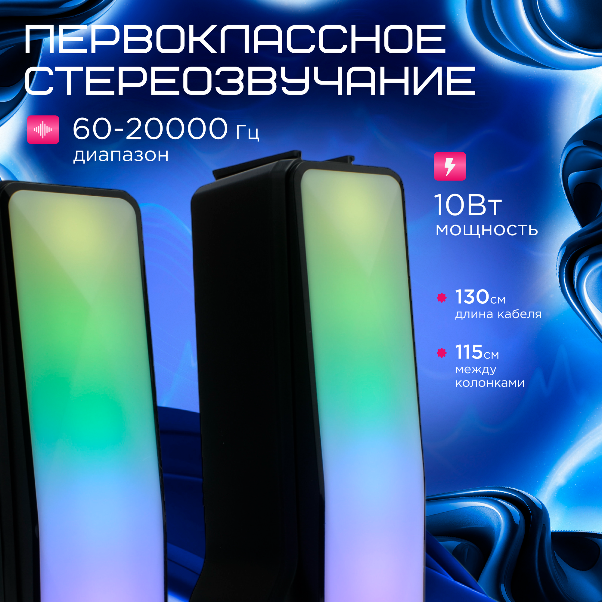 Колонки 2.0 DEXP R610бб, 6 ВТ, RGB-подсветка, сенсорная кнопка вкл/выкл подсветки динамиков