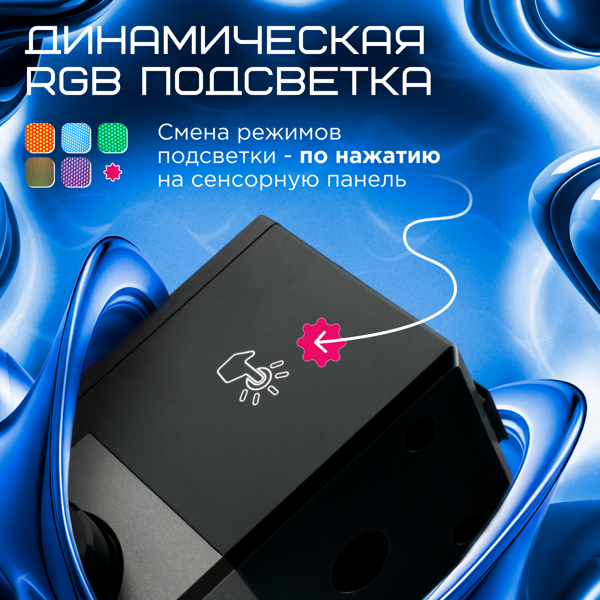 Колонки 2.0 DEXP R610бб, 6 ВТ, RGB-подсветка, сенсорная кнопка вкл/выкл подсветки динамиков