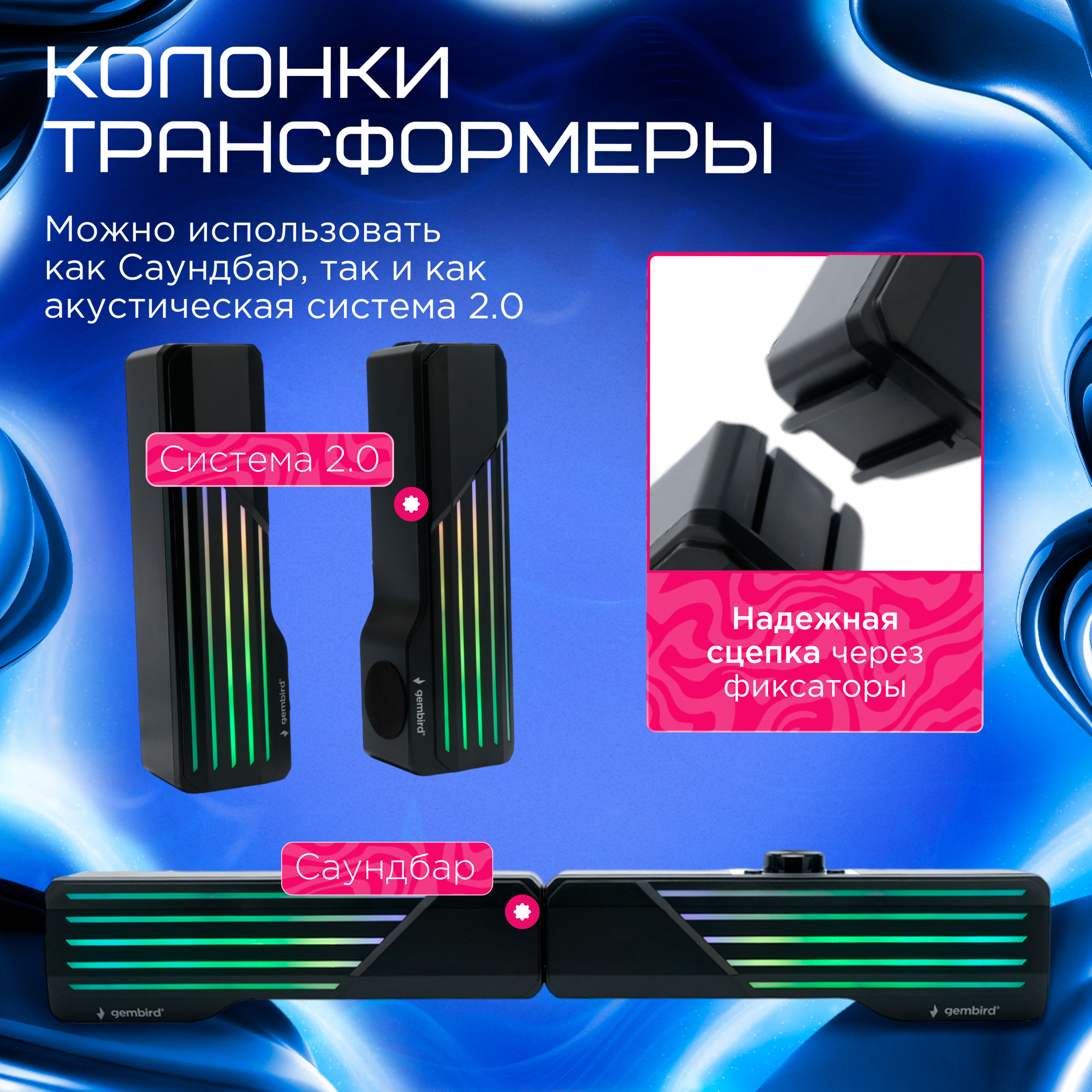 Акустическая система-трансформер 2.0 Gembird черный 10Вт пластик RGB подсветка SPK-610 информация: