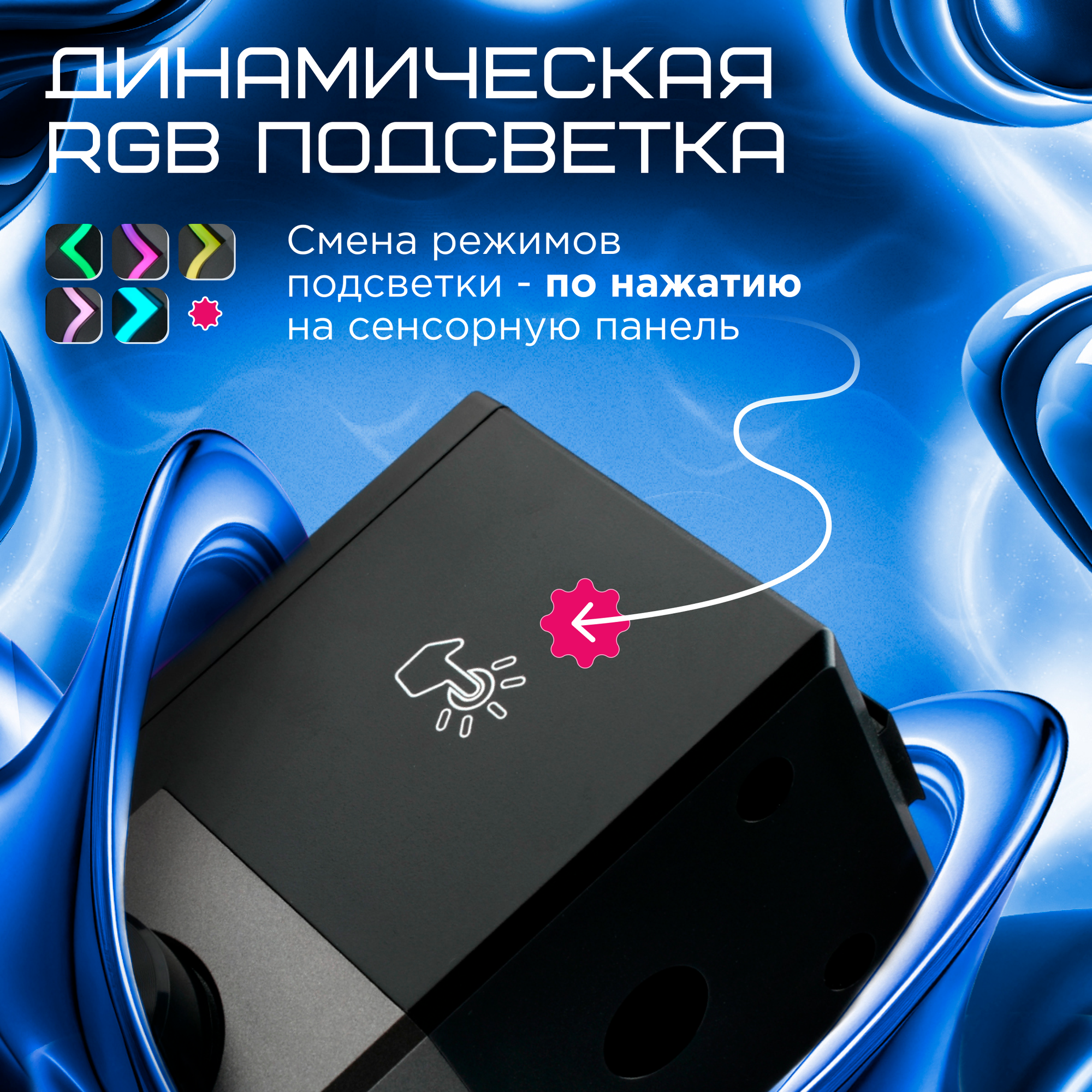 Колонки 2.0 DEXP R610бб, 6 ВТ, RGB-подсветка, сенсорная кнопка вкл/выкл подсветки динамиков