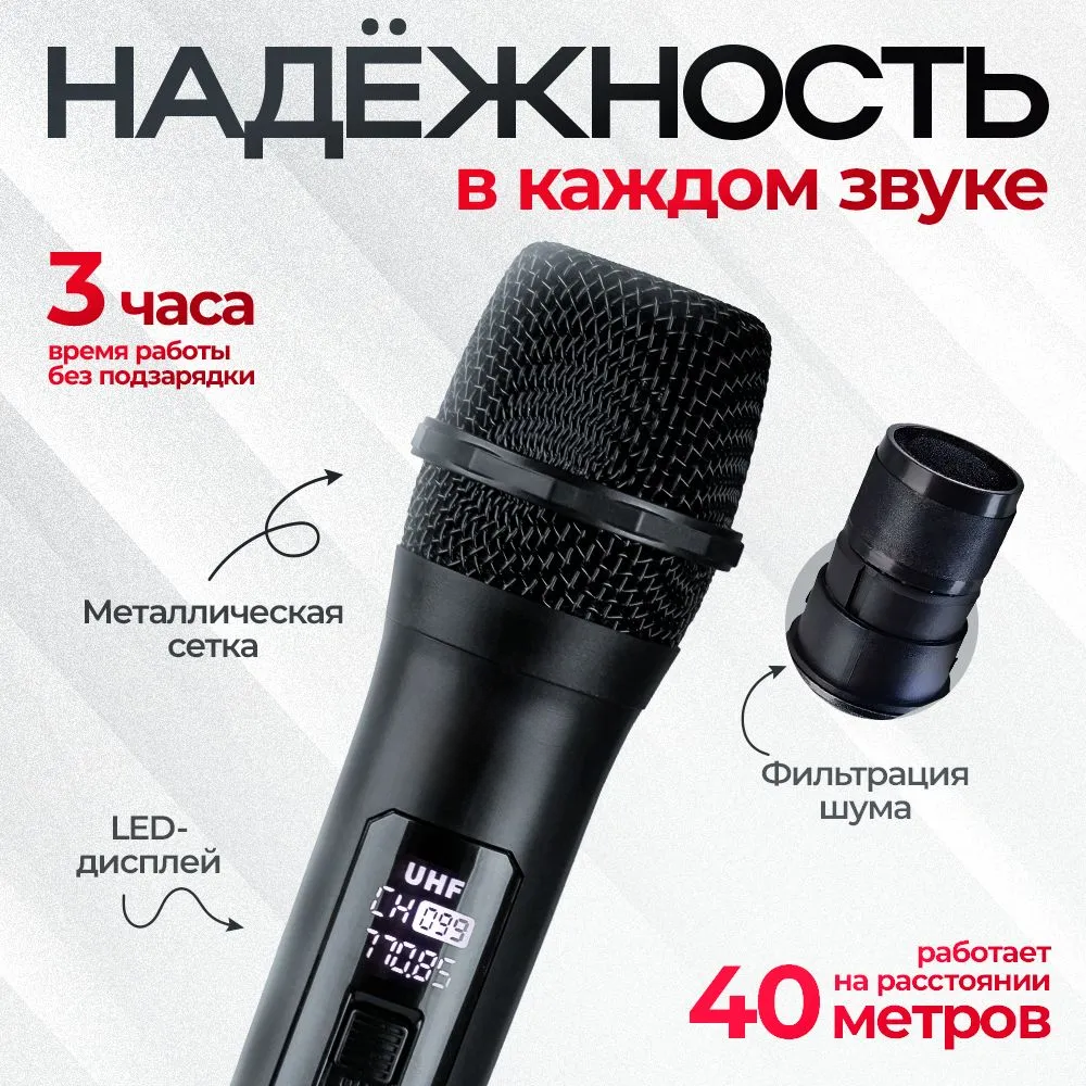 10 цен на Беспроводной микрофон, микрофон для караоке беспроводной, 2 микрофона, комплект, приемник, переходник AUX, черный