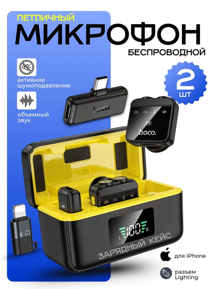 Отзывы на Беспроводной петличный микрофон HOCO L17, Magnetic микрофон + приемник 2 в 1 для Lightning/Type-C, черный