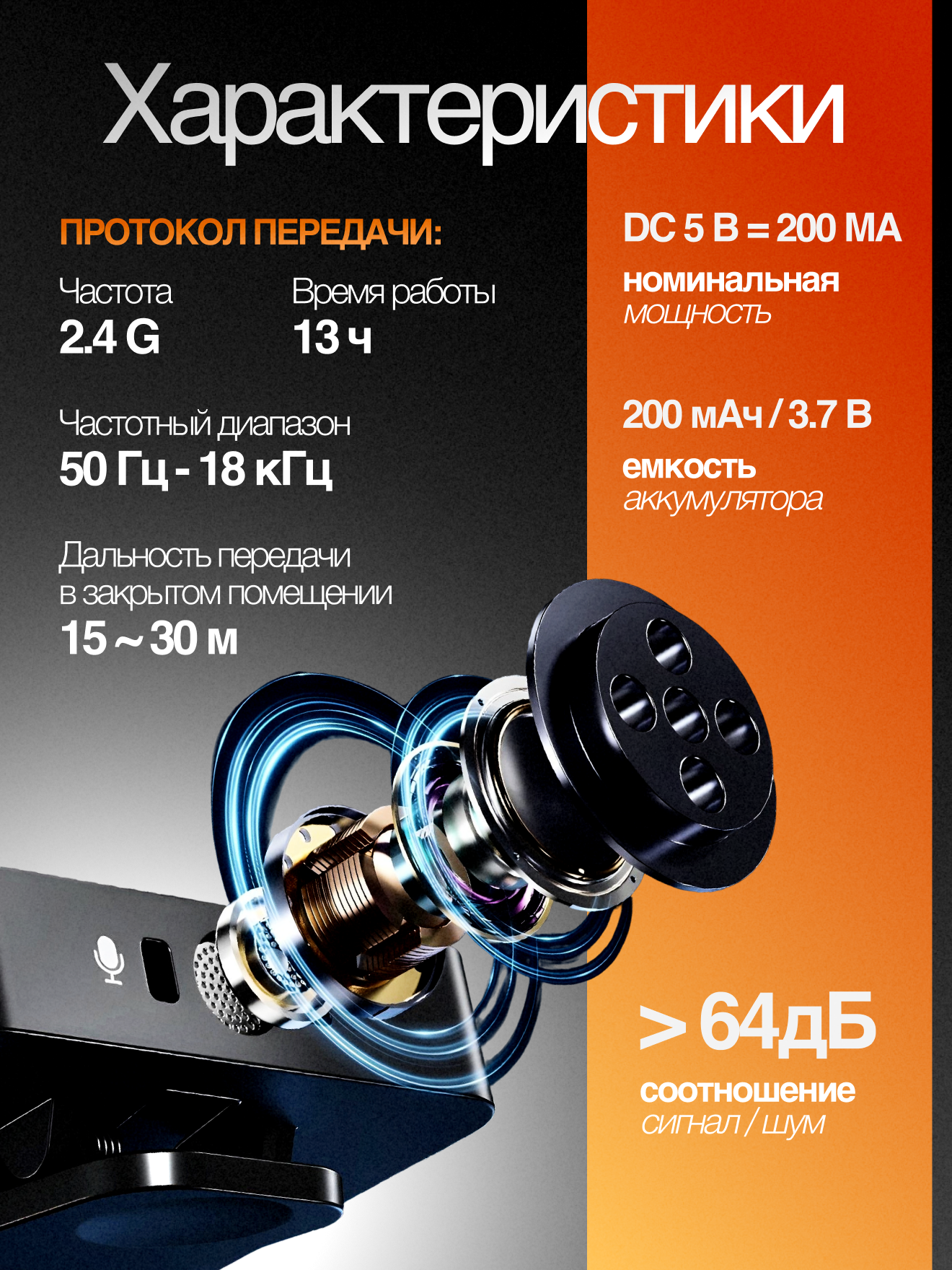 Микрофон петличка SEKAI, конденсаторный, беспроводной, шумоподавление информация: