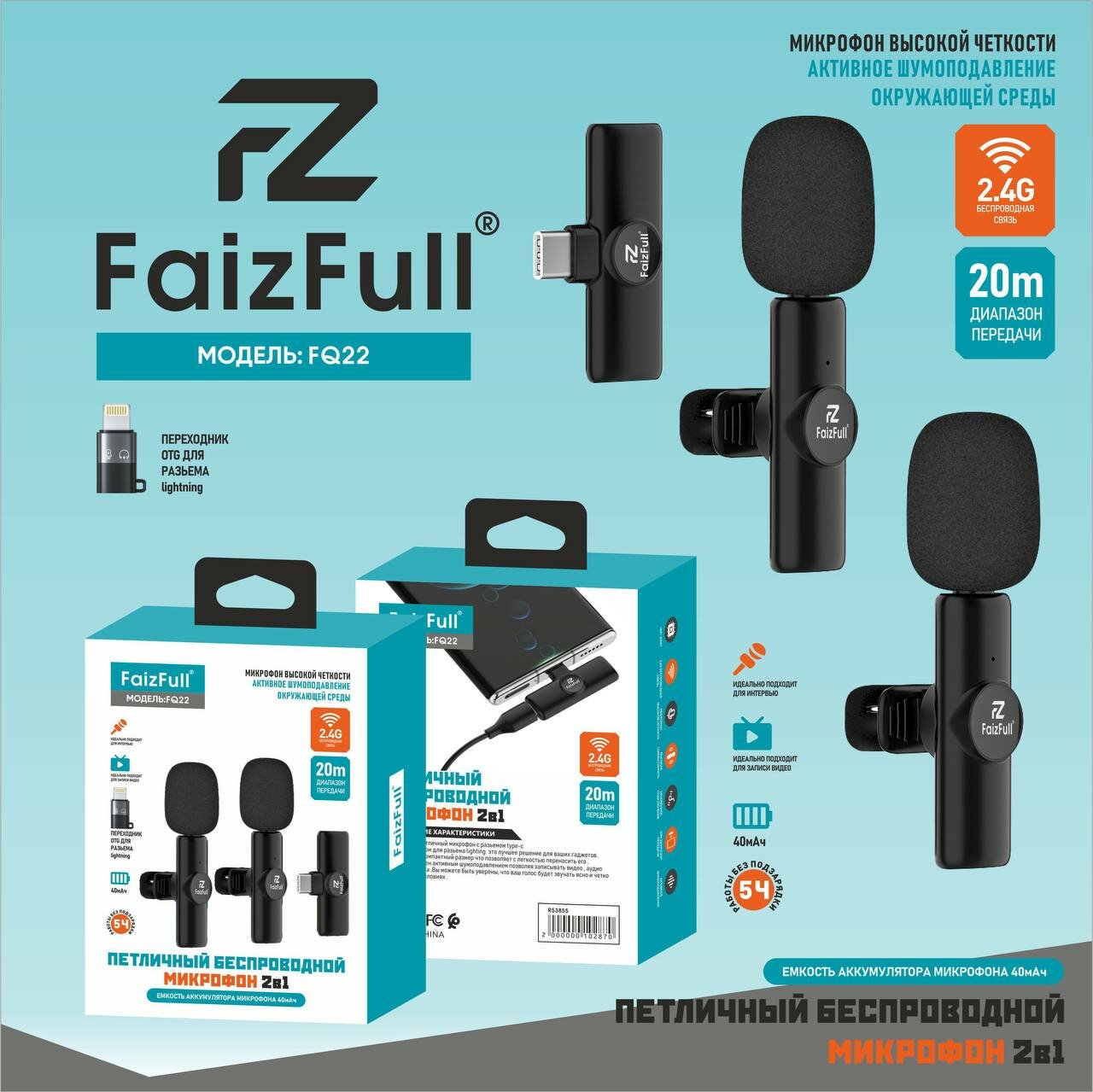 Микрофон петличный FQ 22, 2шт. беспроводной с шумоподавлением, петличка, для мобильного телефона, устройства с Lightning и Type C 2шт информация: