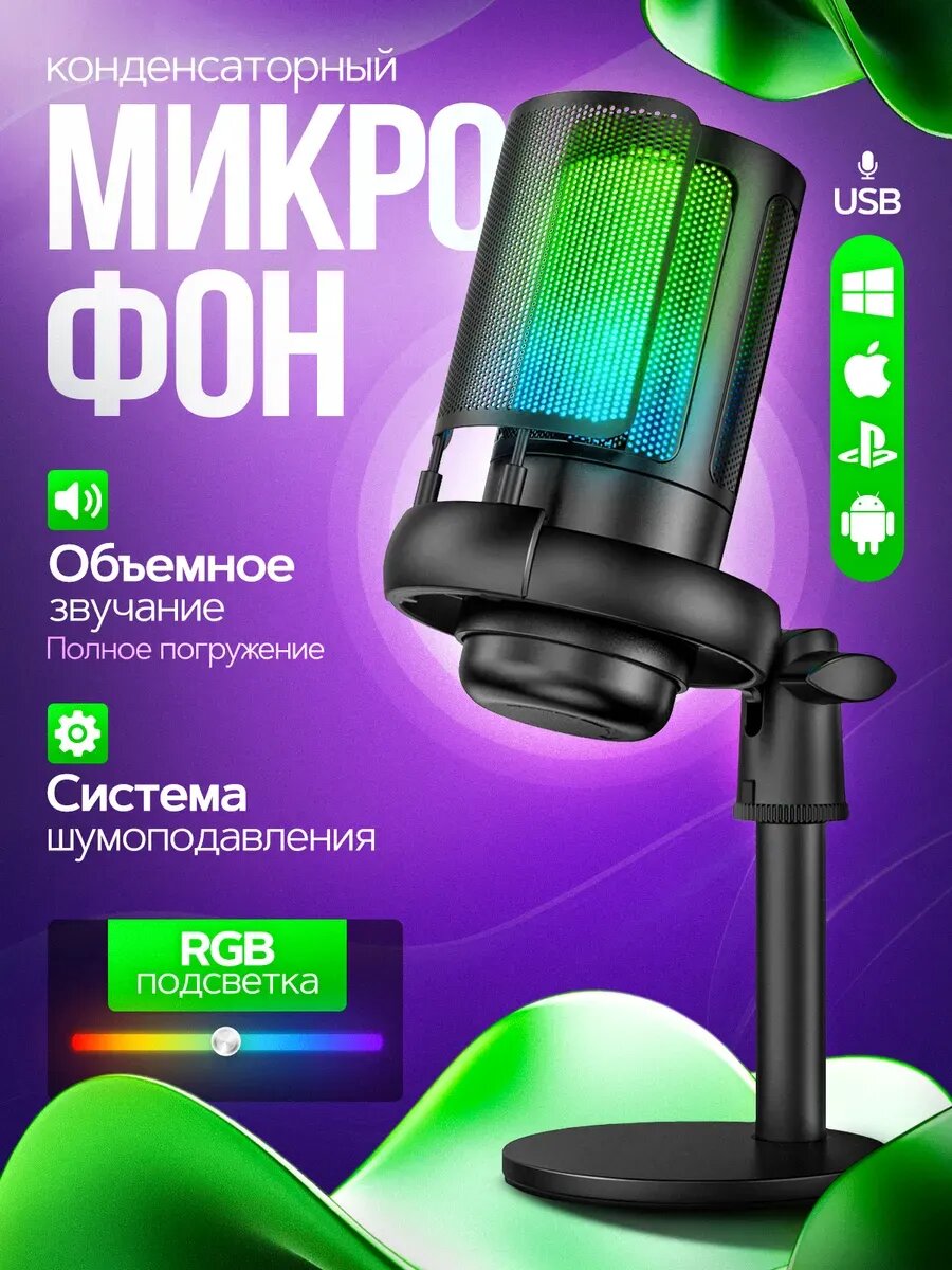 Микрофон студийный конденсаторный игровой для ПК информация: