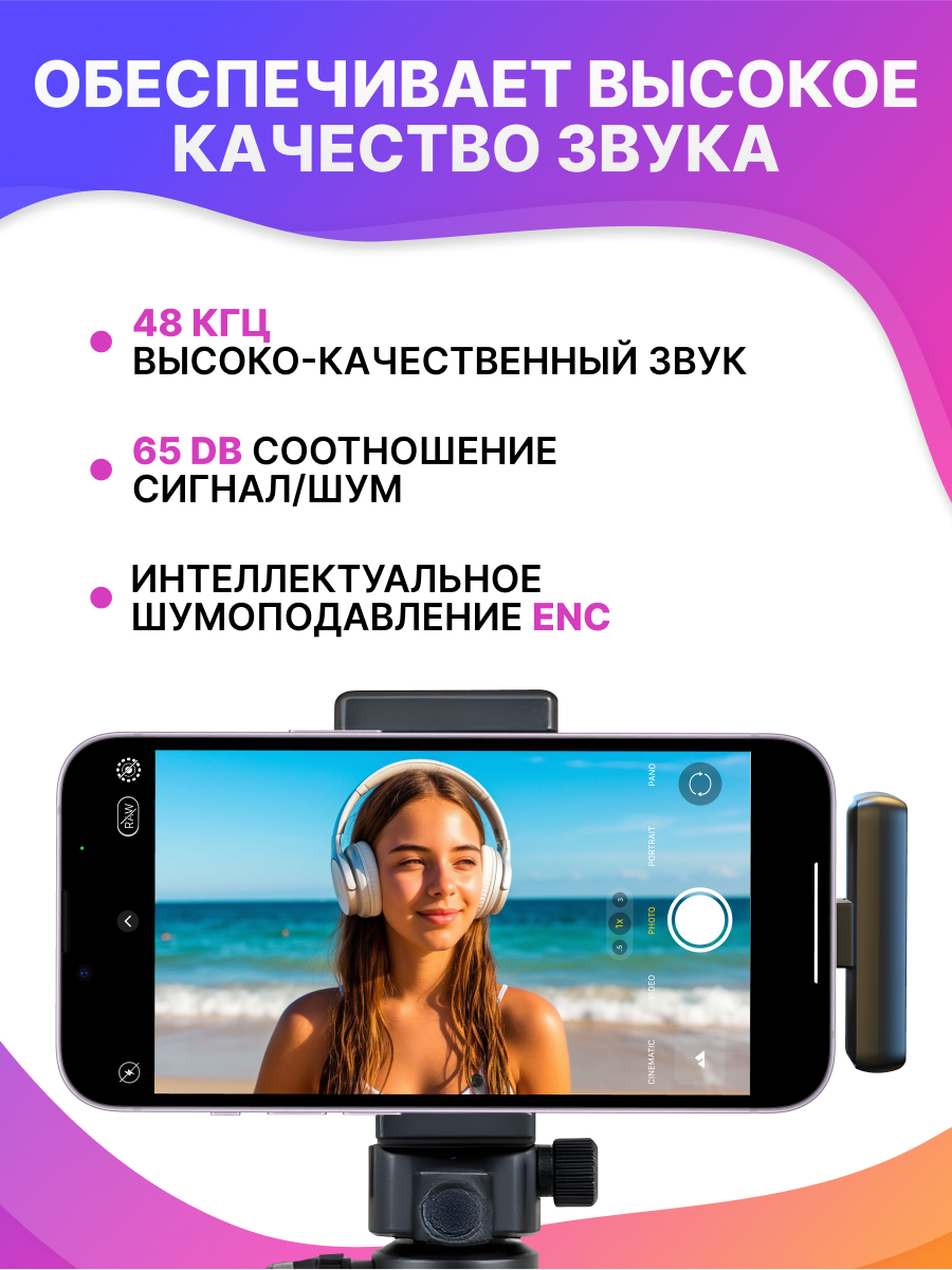 Беспроводной петличный микрофон (2 шт.), Lightning Type-C / Микрофон с шумоподавлением, 48 кГц / Черный информация: