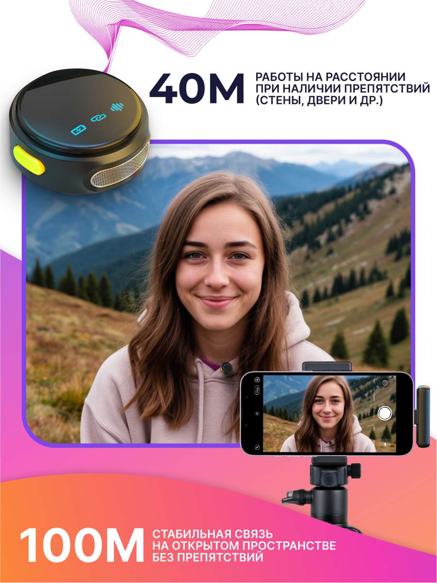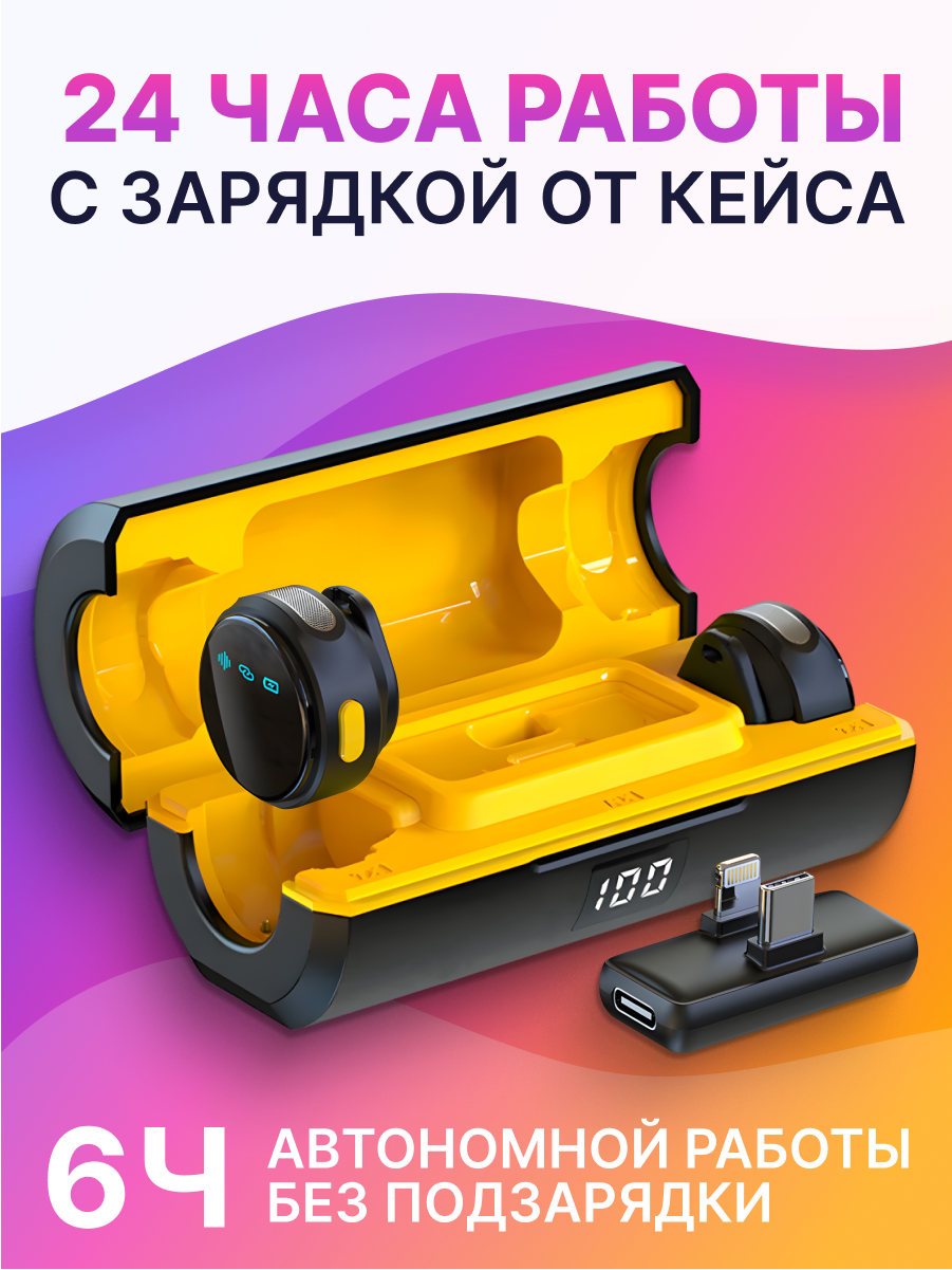 Отзывы на Беспроводной петличный микрофон (2 шт.), Lightning Type-C / Микрофон с шумоподавлением, 48 кГц / Черный