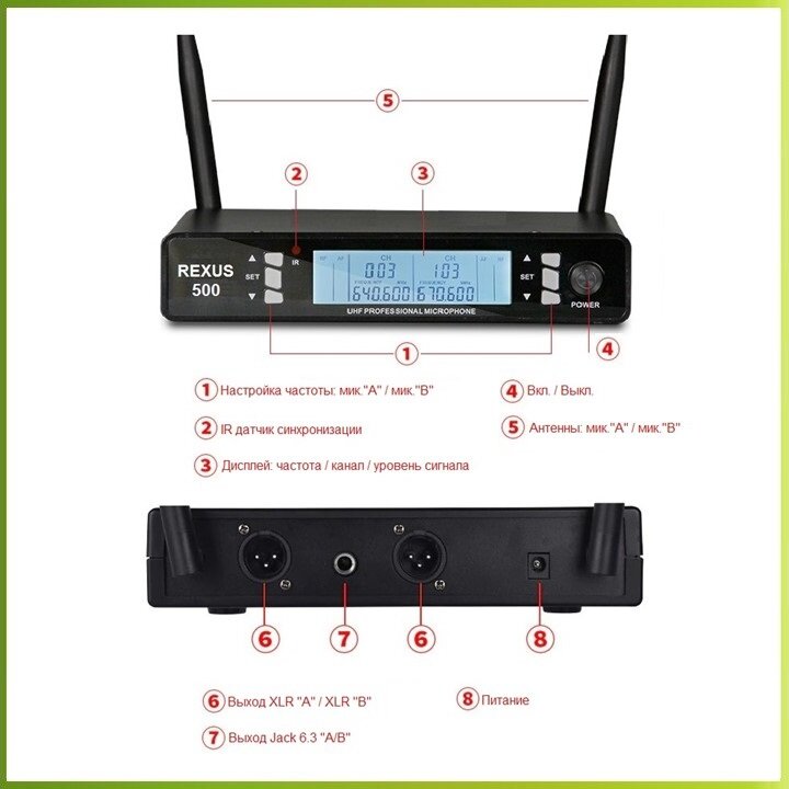 10 цен на REXUS 500 PRO - беспроводная вокальная радиосистема, диапазон UHF, два ручных микрофона