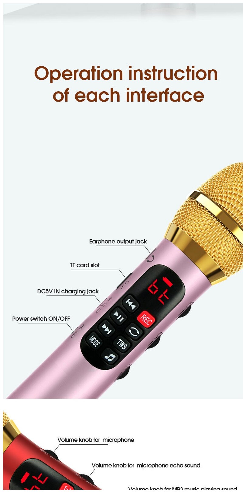 Профессиональный караоке-микрофон L-1038DSP 25W, золотой информация: