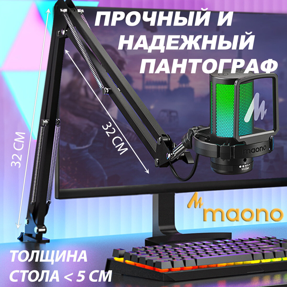 Отзывы на Микрофон MAONO DGM20S, с пантографом, конденсаторный, USB, с RGB подсветкой, черный
