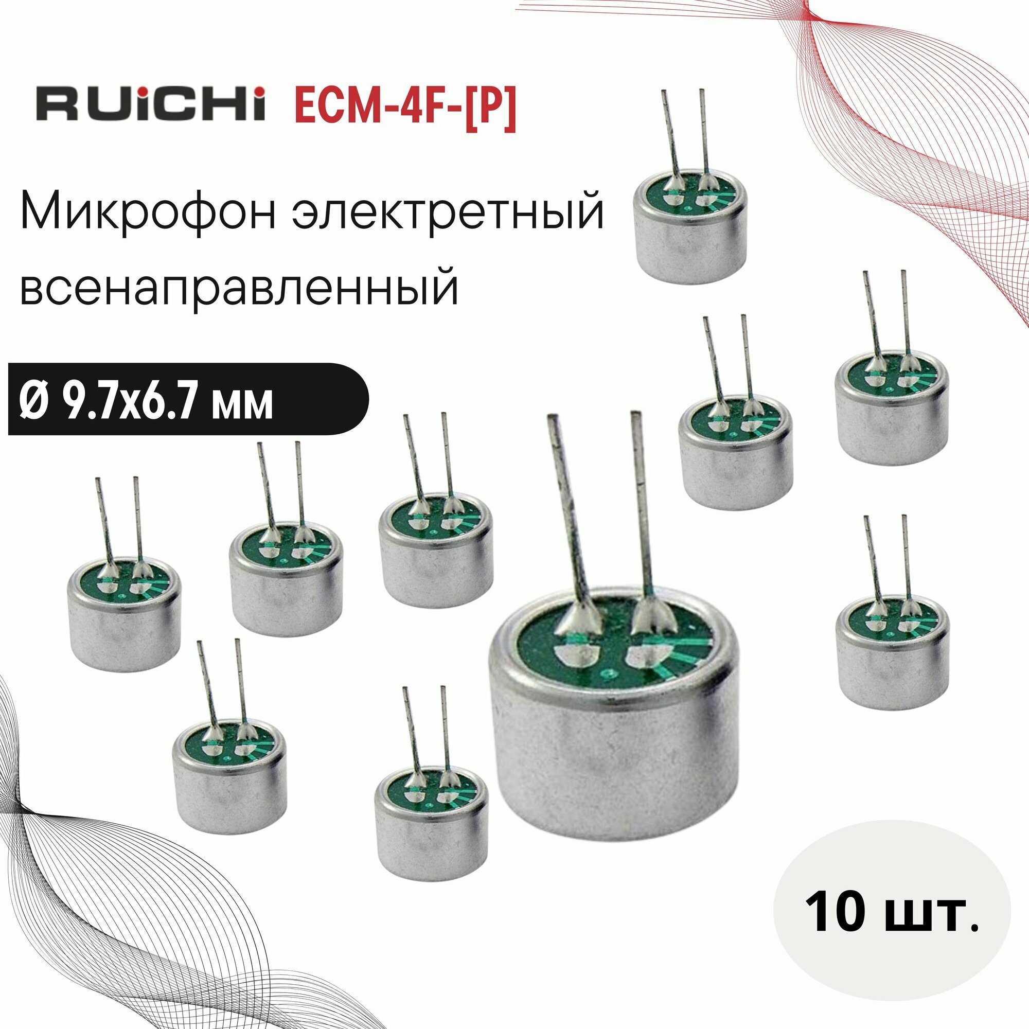 10 цен на RUICHI Микрофон электретный всенаправленный ECM-4F- P , 9.7x6.7 мм, -52дБ.-70 дБ, 3.10 В, 20 - 20000 Гц, 10 шт