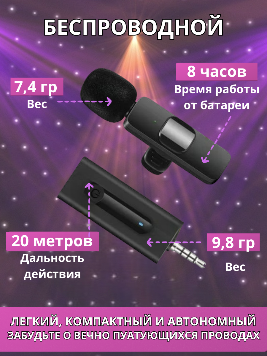 Микрофон беспроводной Петличка с шумоподавлением 2 шт информация: