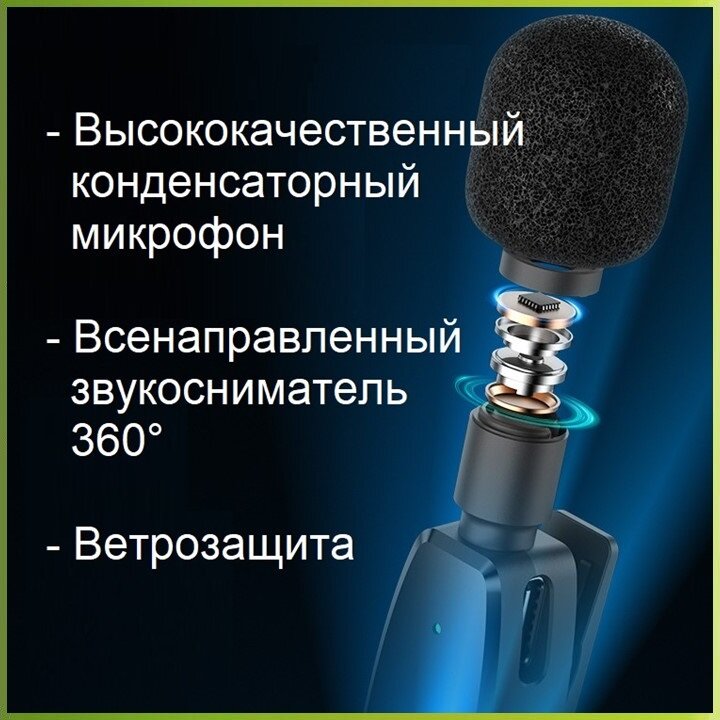 Микрофон петличный беспроводной SJCAM М1 с шумоподавлением, Type-C, Lightning, mini jack 3,5 mm, 2 шт, черный