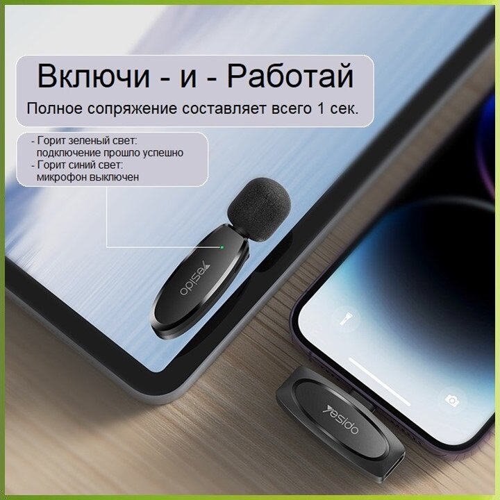 Отзывы на YESIDO KR12 - беспроводной микрофон-петличка, 2.4ГГц, LIGHTNING, 20 метров
