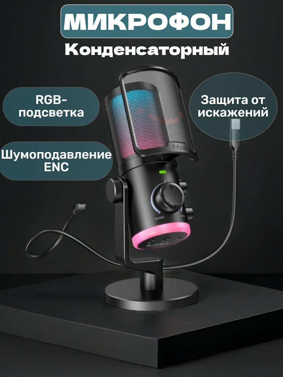 10 цен на Микрофон конденсаторный USB Fifine AmpliGame AM6, RGB, черный
