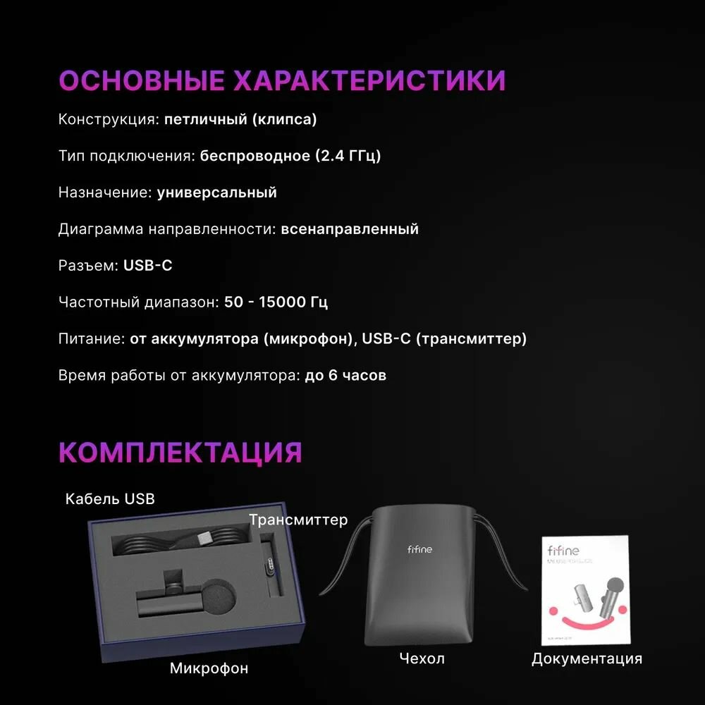 Беспроводной петличный микрофон Fifine M6 Wireless Lapel Microphone информация: