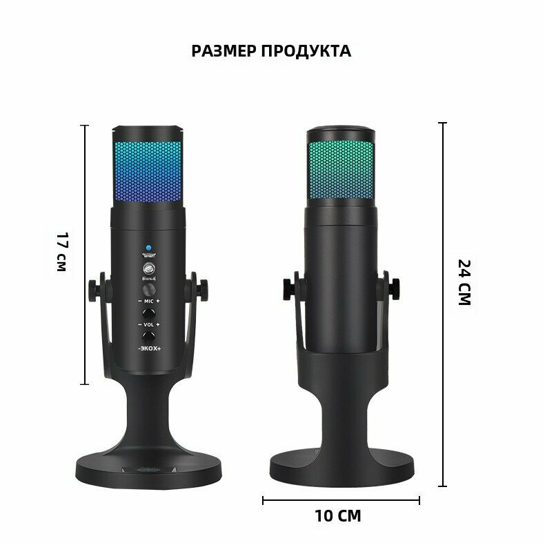 10 цен на USB микрофон с RGB-подсветкой и держателем – студийный микрофон для компьютера и ПК, стримов, Zoom, OBS, Discord