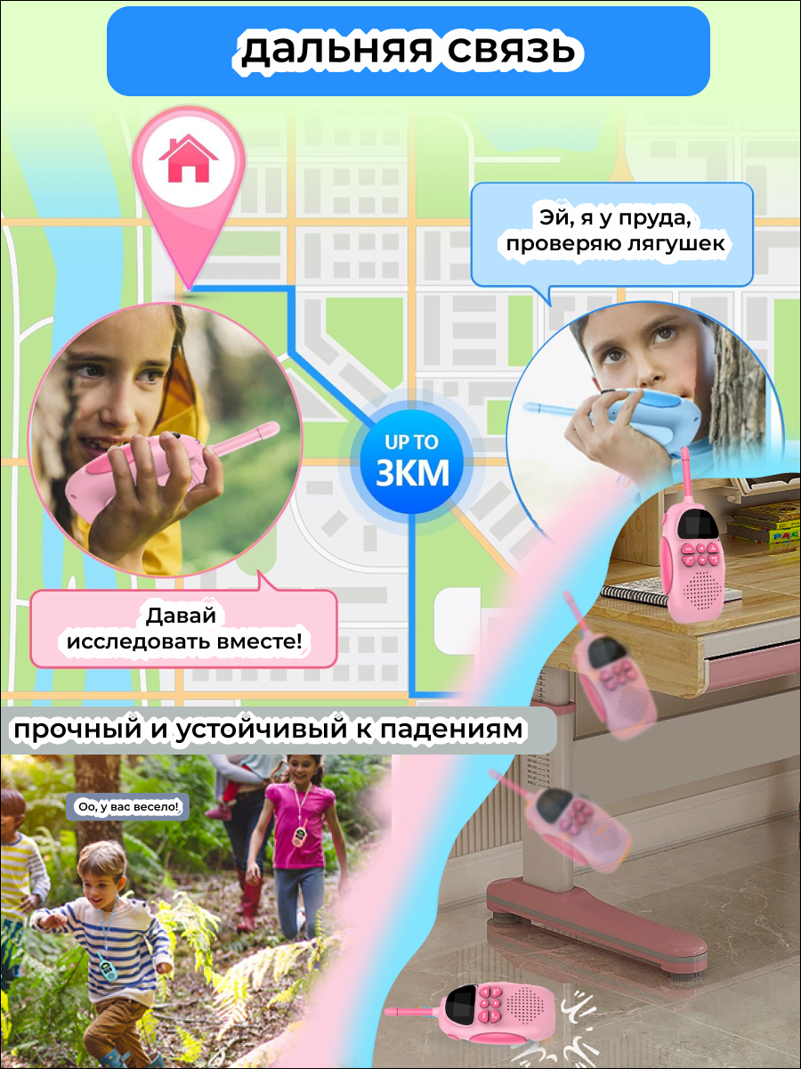 10 цен на Рация ArtHouse3D, универсальная, шумоподавление, 2 канала, розовый, голубой, 2 штуки