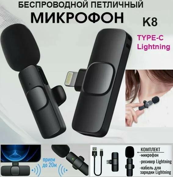 Беспроводной петличный Микрофон K8, для Android, Type-C, Bluetooth, черный информация: