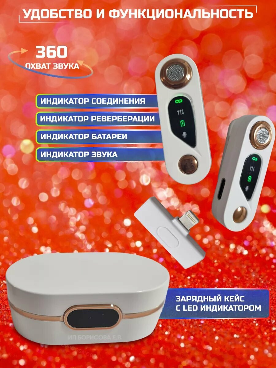 Беспроводной петличный микрофон для iPhone, 2шт, с кейсом, шумоподавление информация: