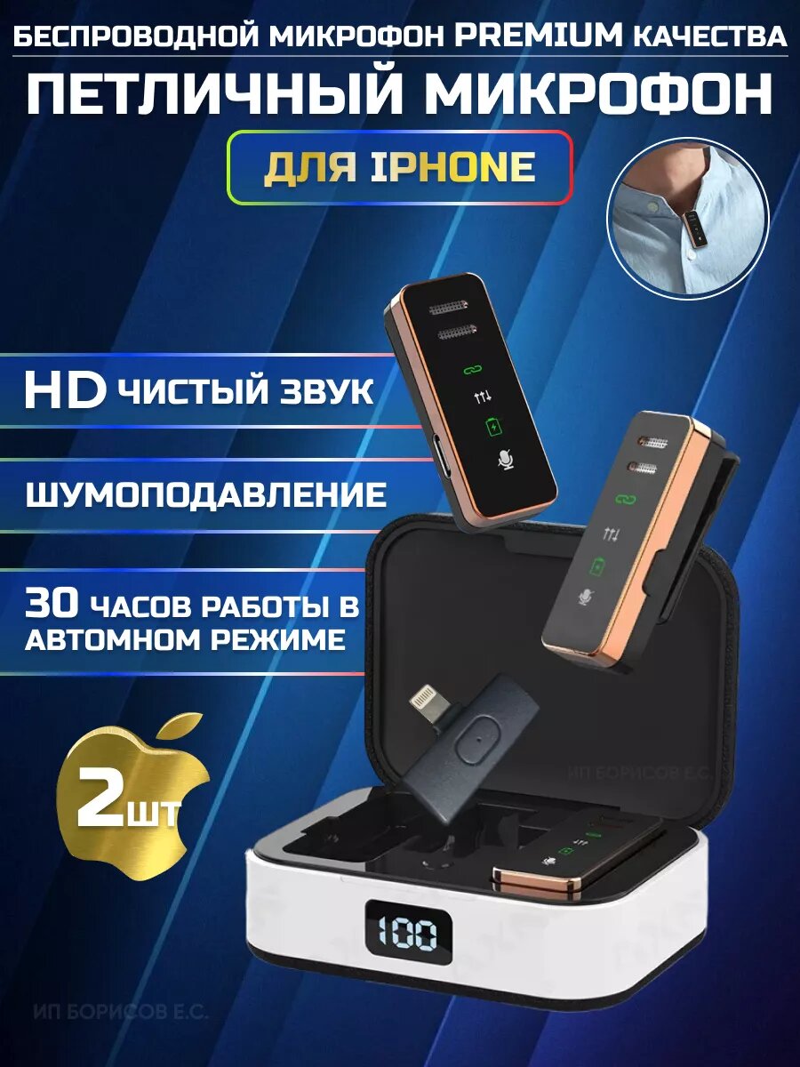 10 цен на Петличный микрофон с шумоподавлением, для iPhone, 2 микрофона, с зарядным кейсом