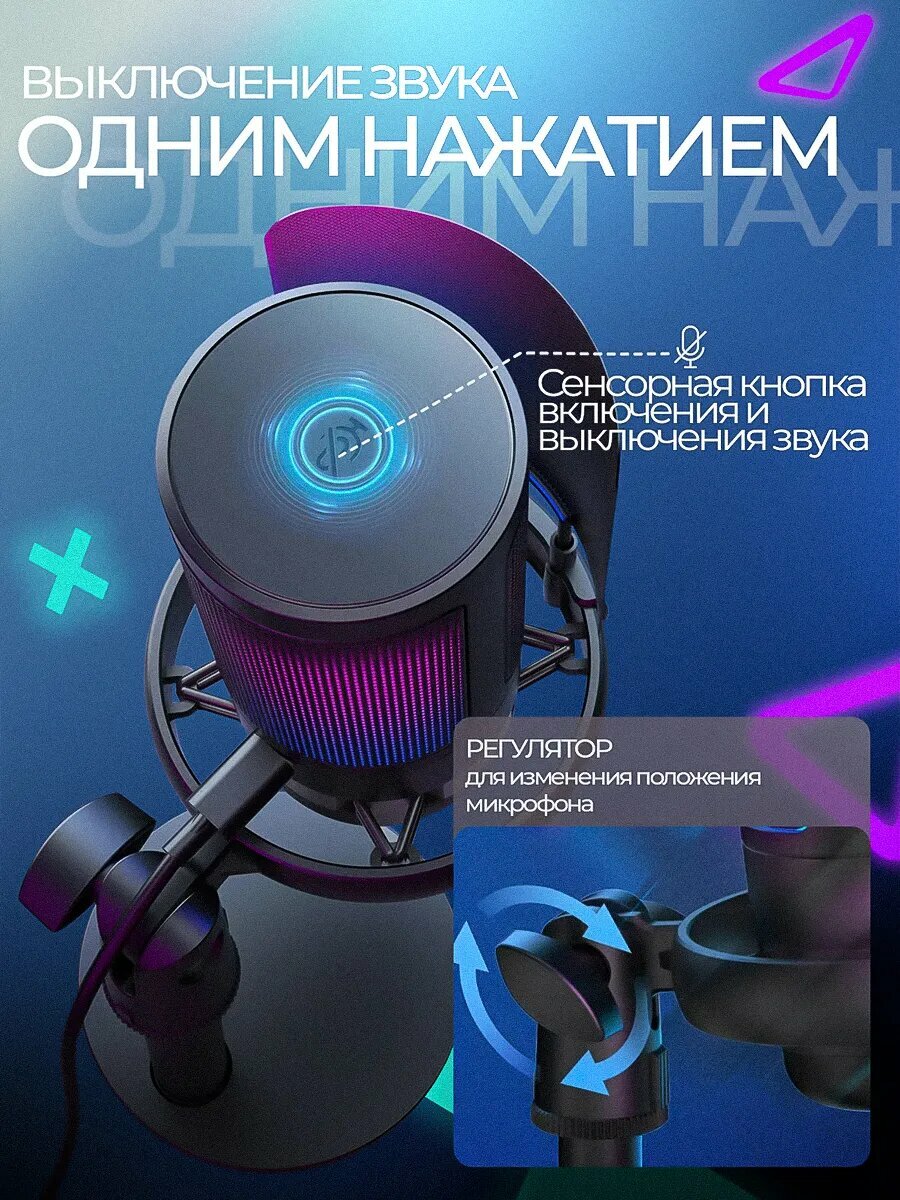 Микрофон игровой для пк iphone android RGB USB (компьютерный, игровой, для стримов. черный) информация: