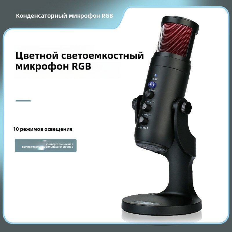 10 цен на Студийный USB микрофон с RGB-подсветкой и кнопками управления – для ПК, ноутбука, стримов, записи, Zoom и Discord