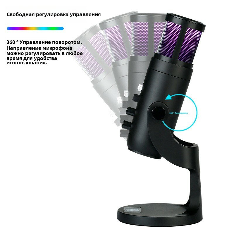 Студийный USB микрофон с RGB-подсветкой и кнопками управления – для ПК, ноутбука, стримов, записи, Zoom и Discord информация: