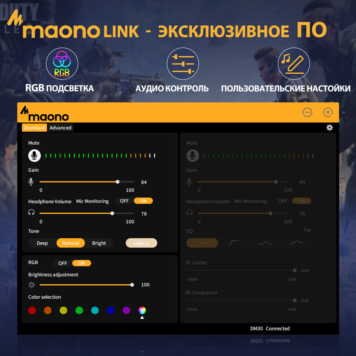 Микрофон MAONO DM30 RGB, USB, конденсаторный с RGB подсветкой информация:
