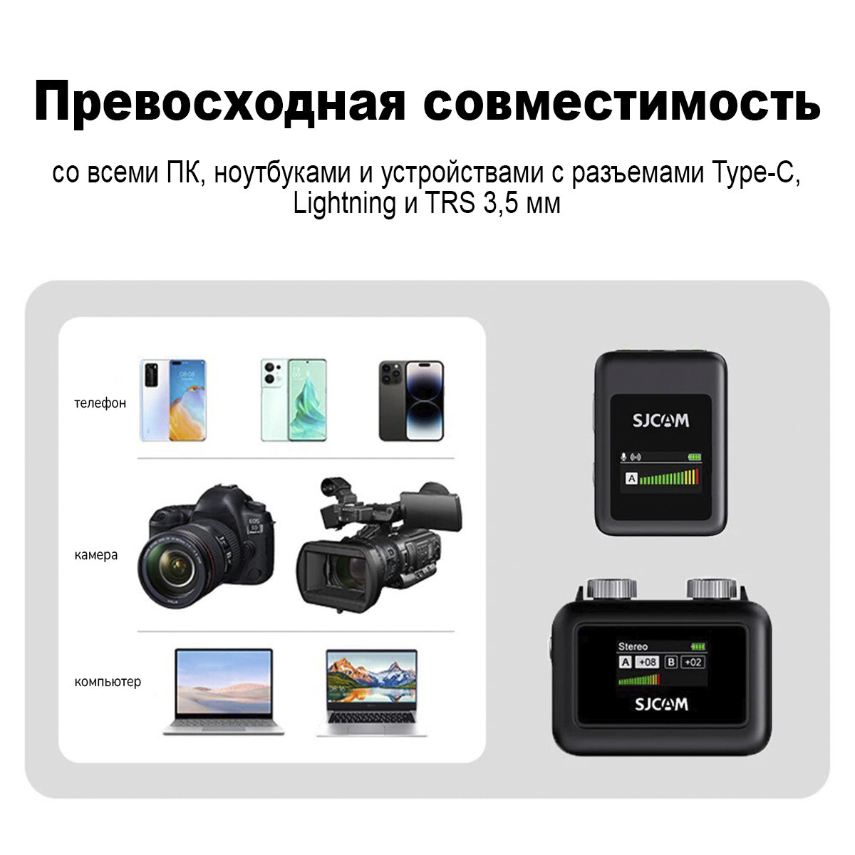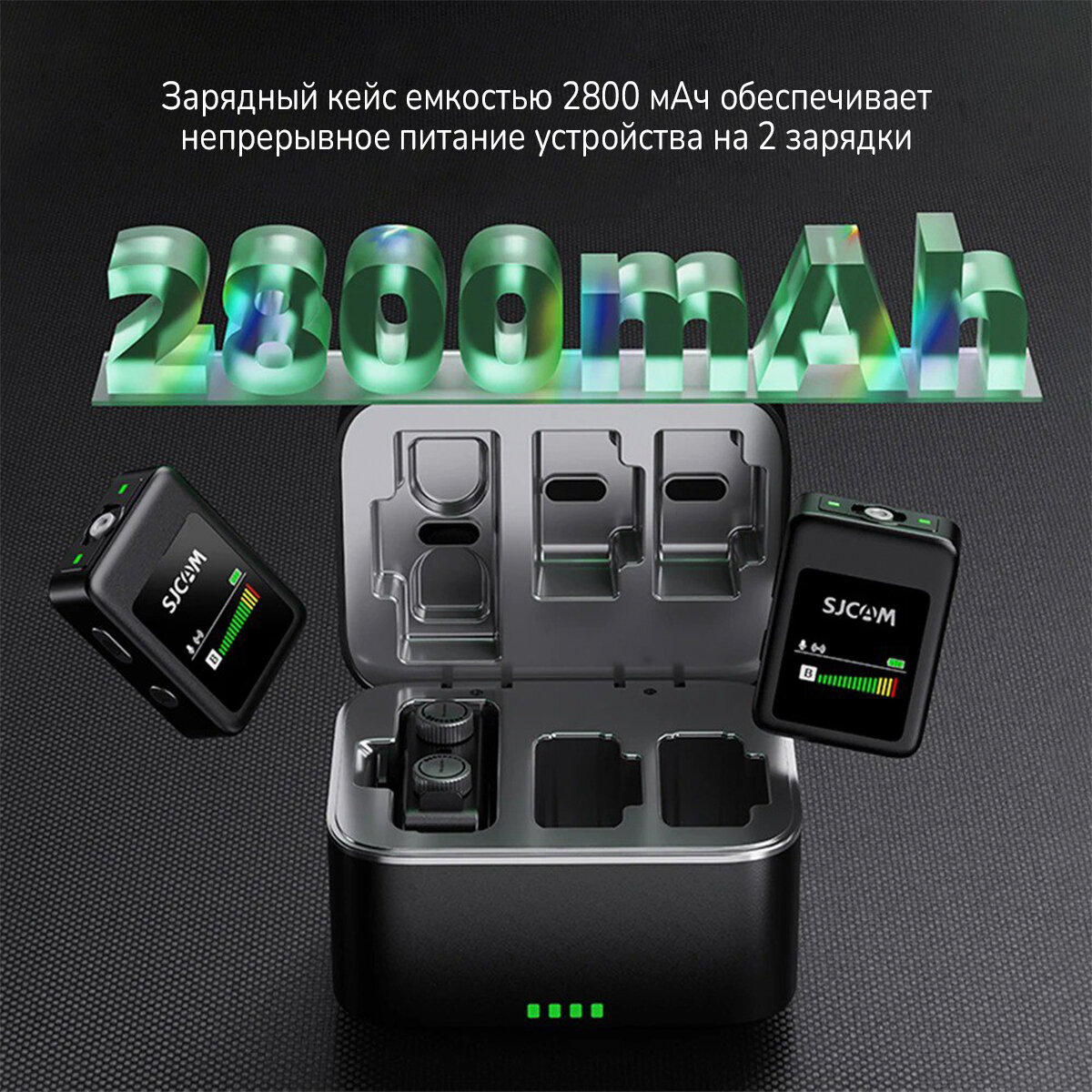Микрофон петличный беспроводной SJCAM М1 с шумоподавлением, Type-C, Lightning, mini jack 3,5 mm, 2 шт, черный информация: