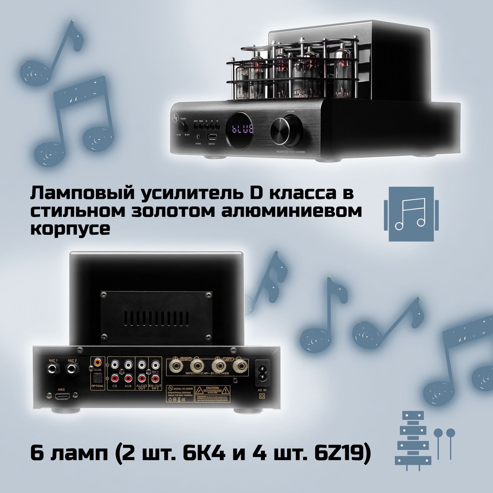 Ламповый усилитель мощности звука Hyper Sound AV-2080R черный информация: