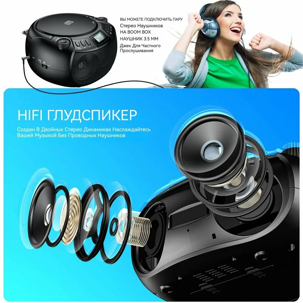 Магнитола CD Проигрыватель, Стерео звуковой динамик, черный информация: