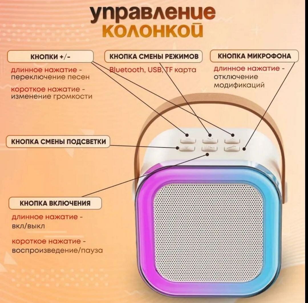 Портативная bluetooth колонка с 2 микрофоны К12 беспроводной динамик для караоке информация: