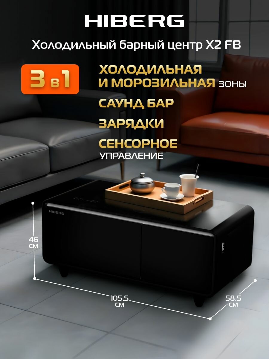 Холодильный барный центр HIBERG X2 FB, умный столик с холодильником, черный информация: