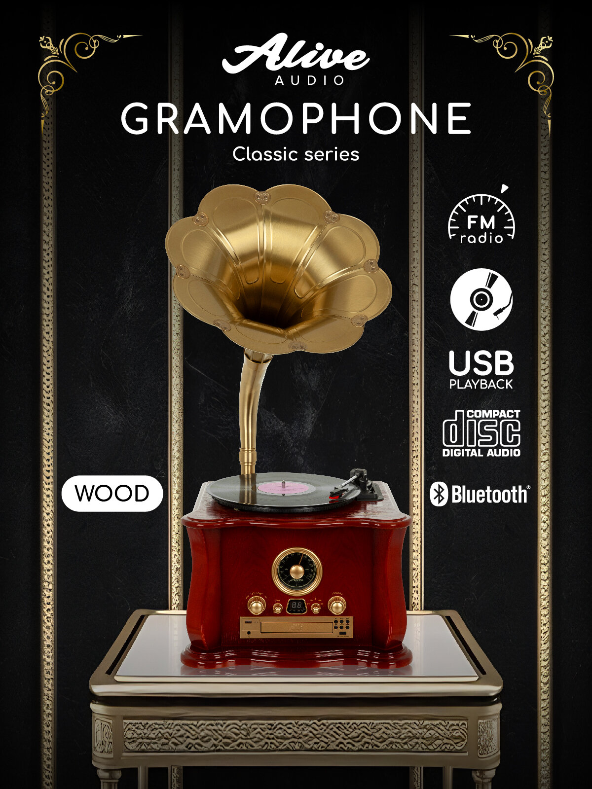 Виниловый проигрыватель Alive Audio Gramophone Wood (набор 2в1) информация: