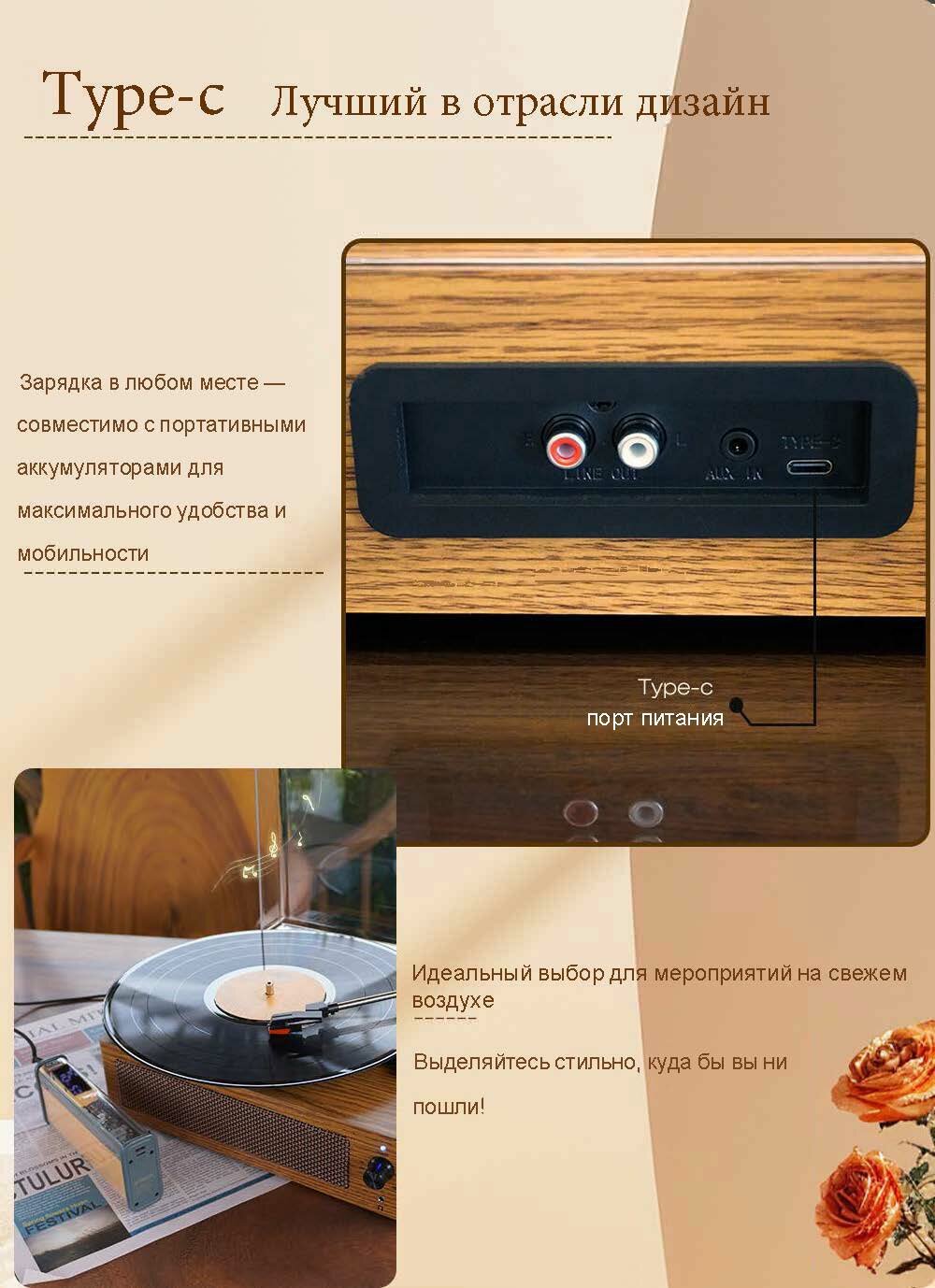 Проигрыватель Виниловых Пластинок Bluetooth С Динамиками Портативный Поворотным