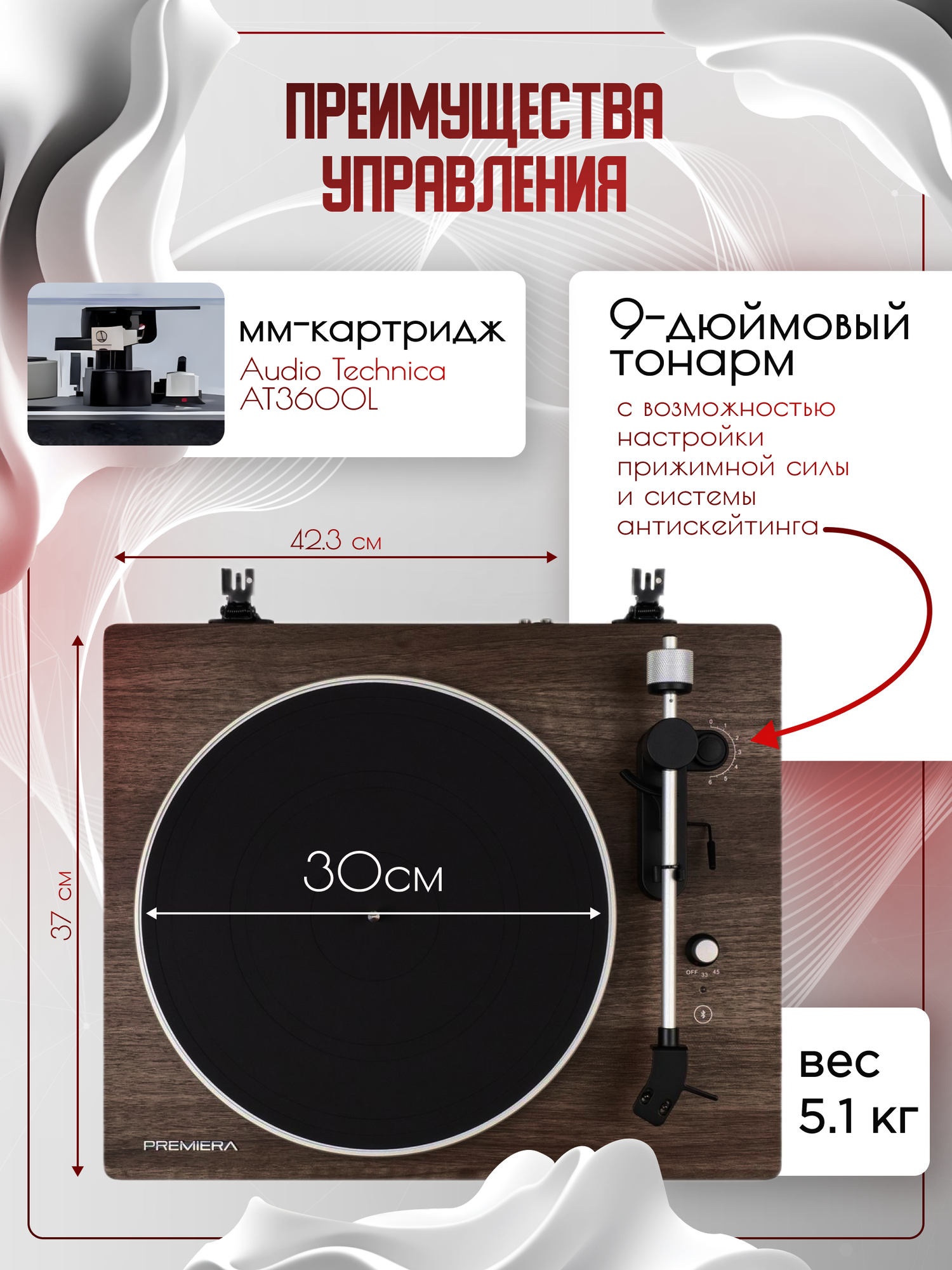 PREMIERA ECO BT - виниловый проигрыватель с Bluetooth модулем информация: