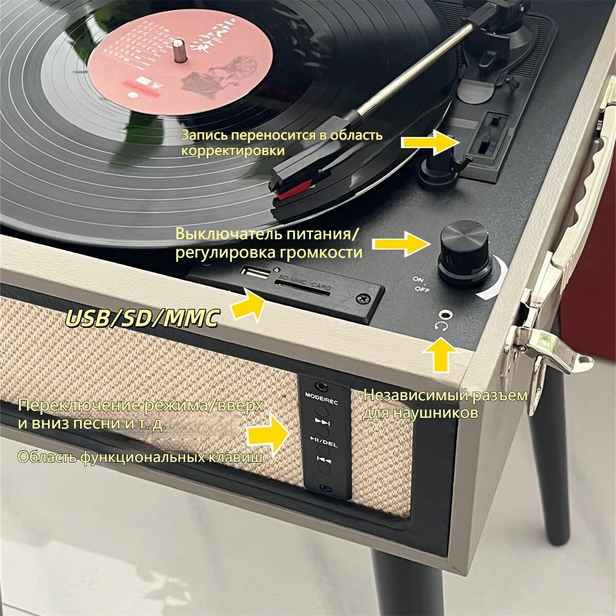 Проигрыватель Виниловых Пластинок Bluetooth С Динамиками Портативный Поворотным